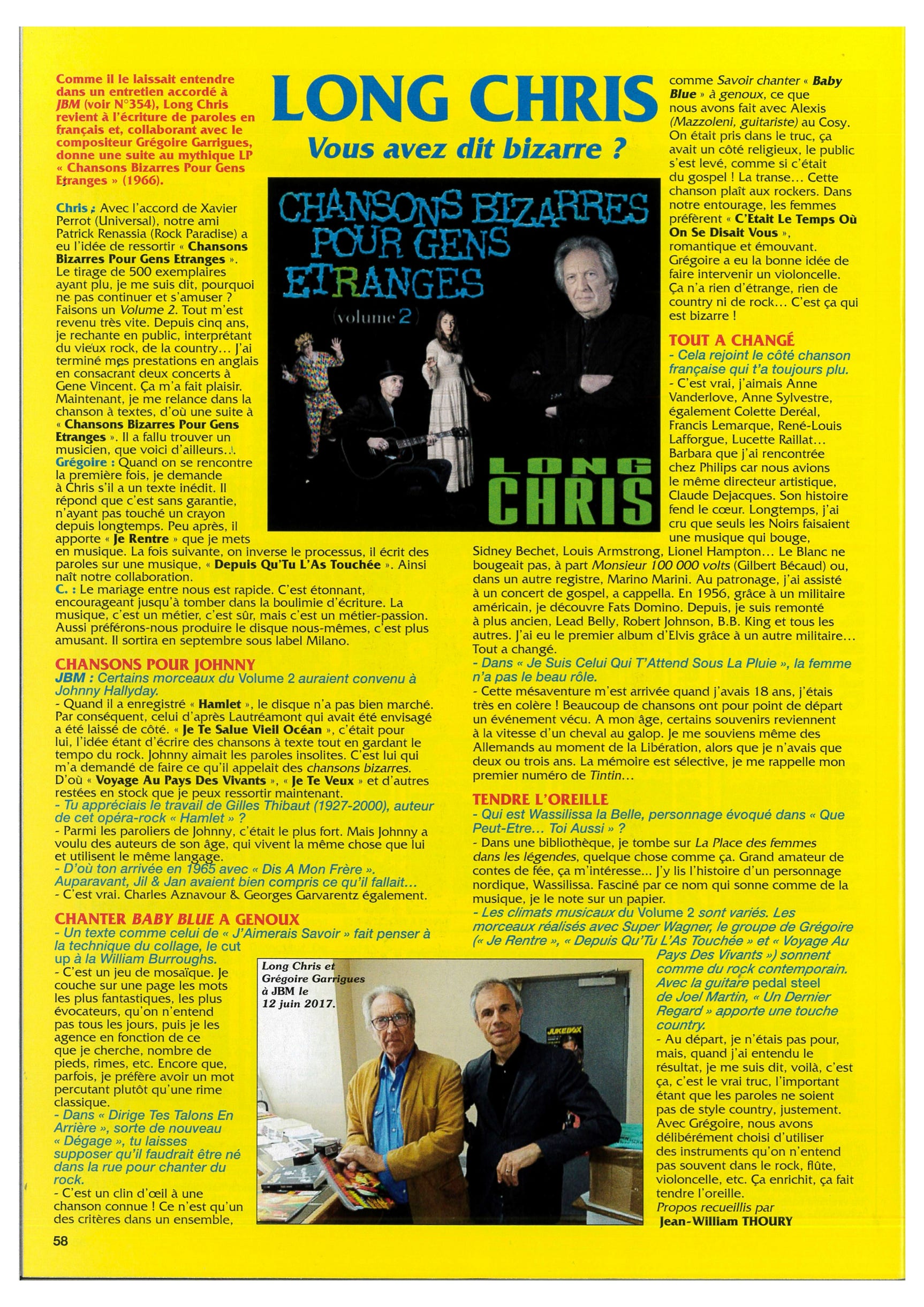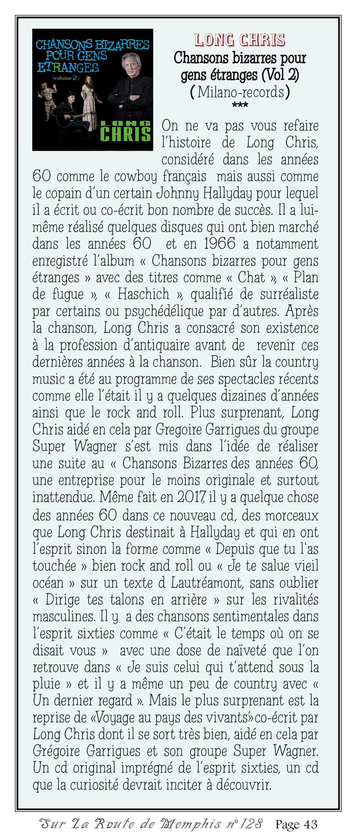 Long Chris « Chansons bizarres pour gens étranges » Presse